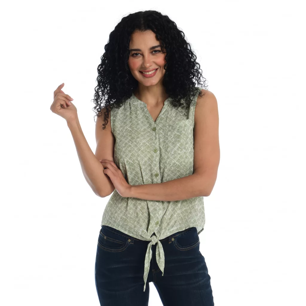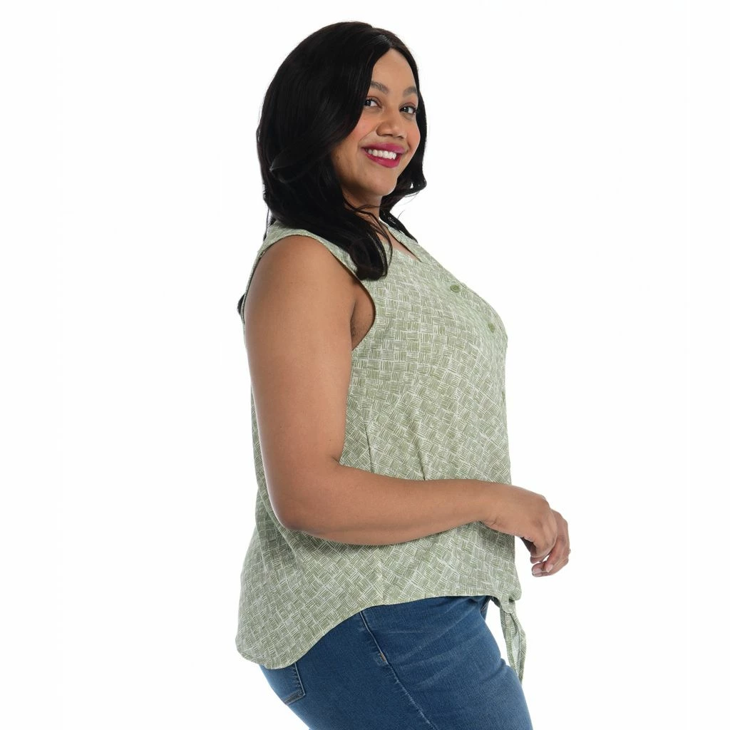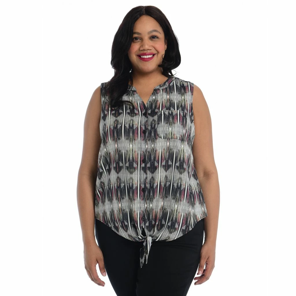 Introducing our must-have Drapey Woven Top. Crafted in 100% polyester for a luxe feel, it’s the epitome of style meets ease. Not sheer, this lightweight piece offers effortless sophistication. With a full button front, adjustable tie, and a flattering curved hem, it’s versatile and chic. Perfect layering companion, available in three exclusive prints for endless styling possibilities.