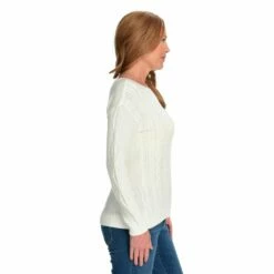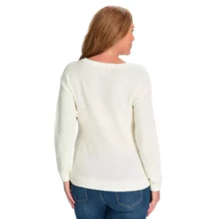 Snuggle into sweater season with this winter staple. Classic silhouette with cable knit detailing is easy to dress up or down, with jeans, skirts, and of course your favorite accessories!