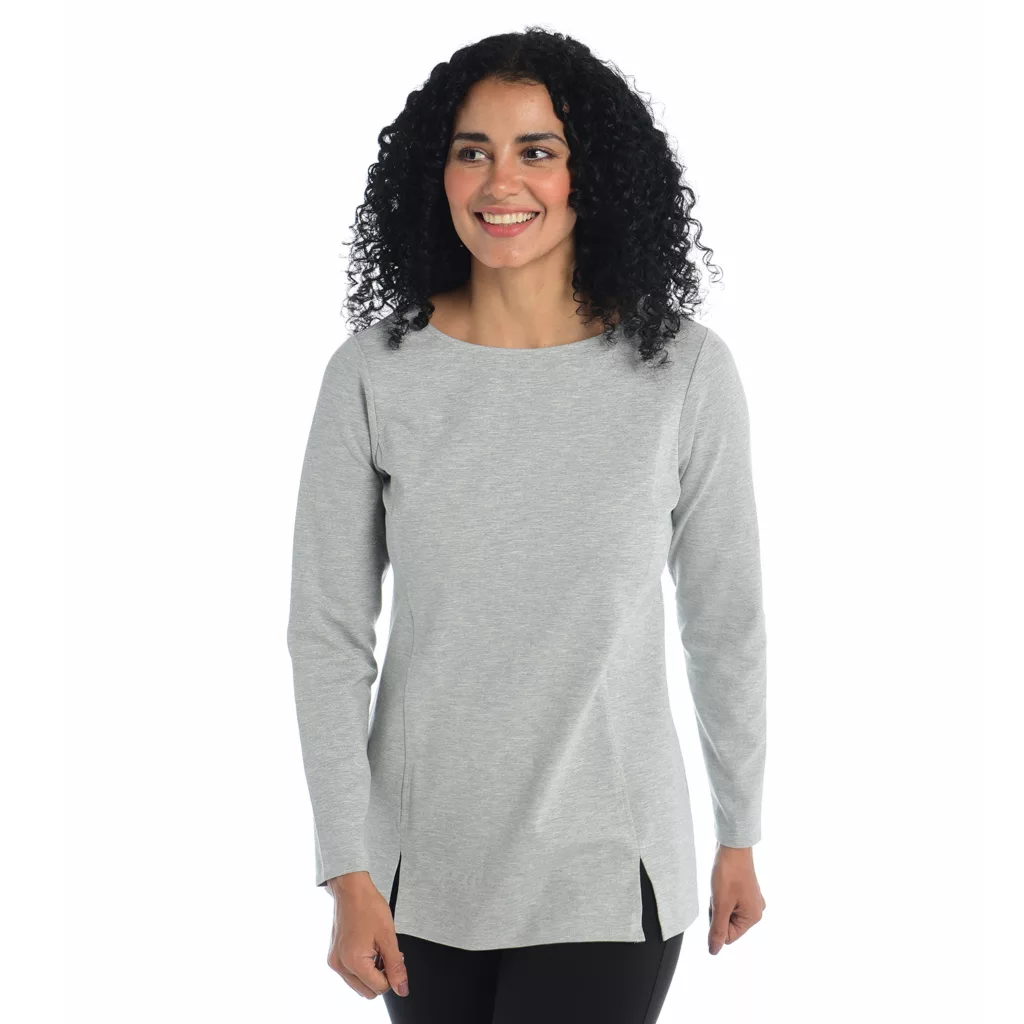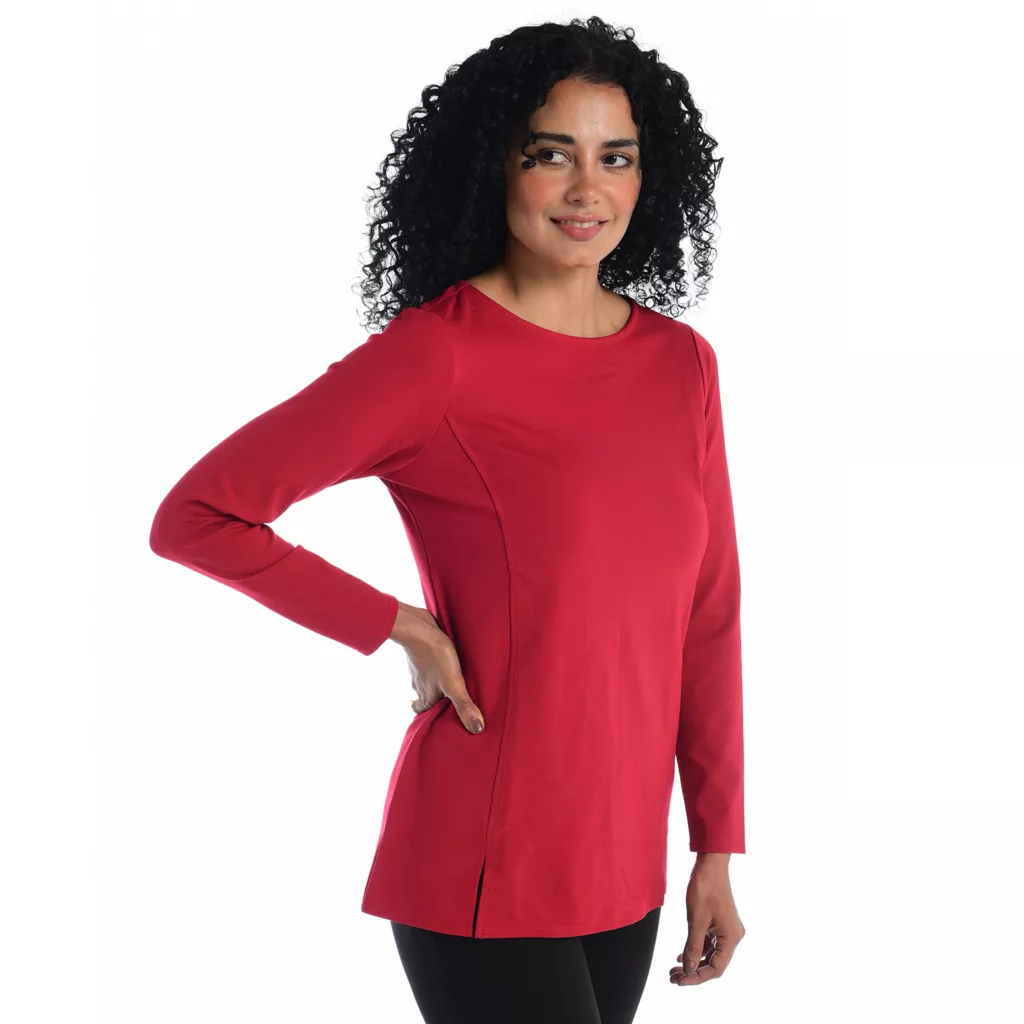 Elevate your everyday style with our Crew Neck Ponte Top. The tunic length and flattering princess seams make it a versatile choice. Wear it solo or layered under sweaters or jackets. Plus, it’s easy-care and pairs perfectly with denim. Your new go-to top!