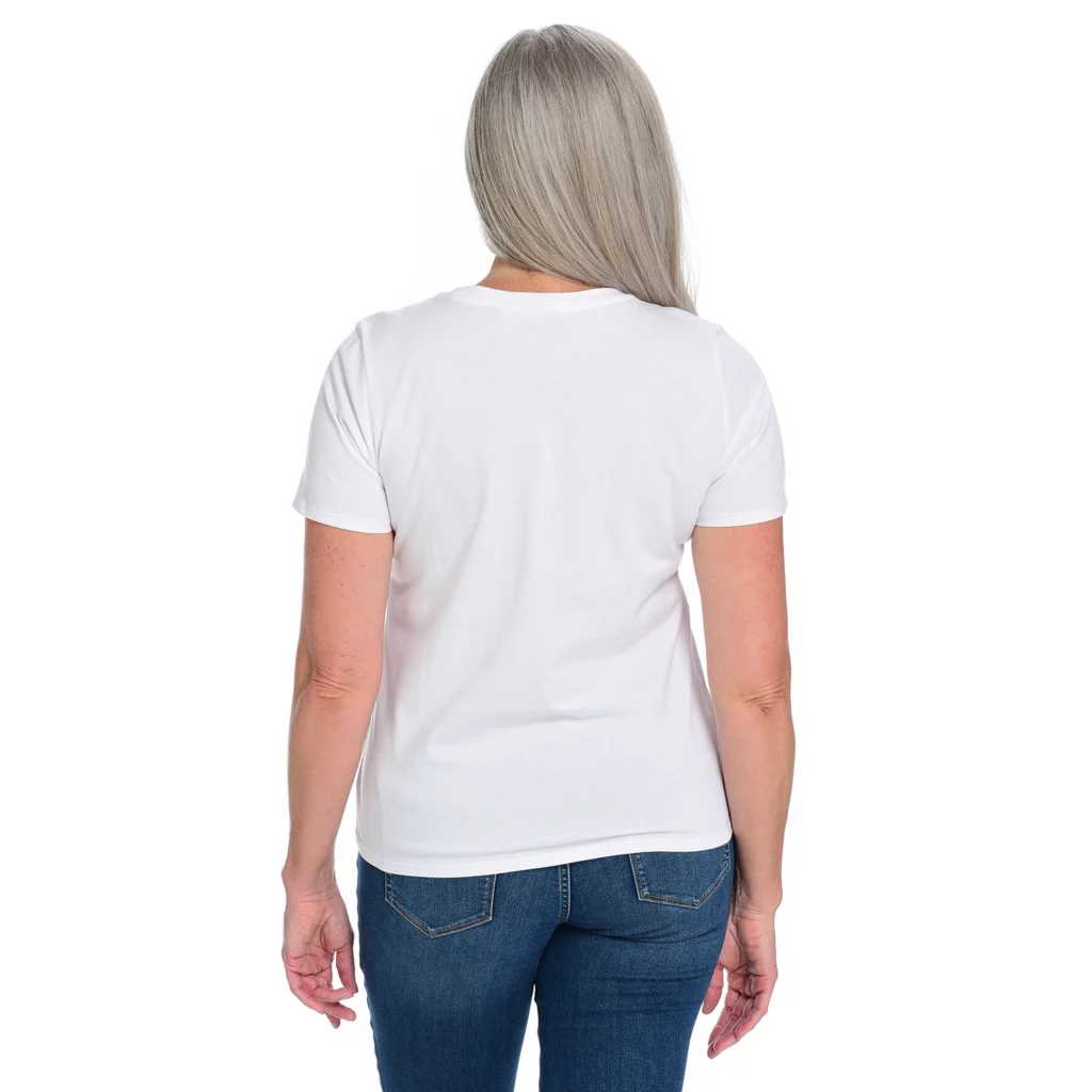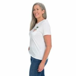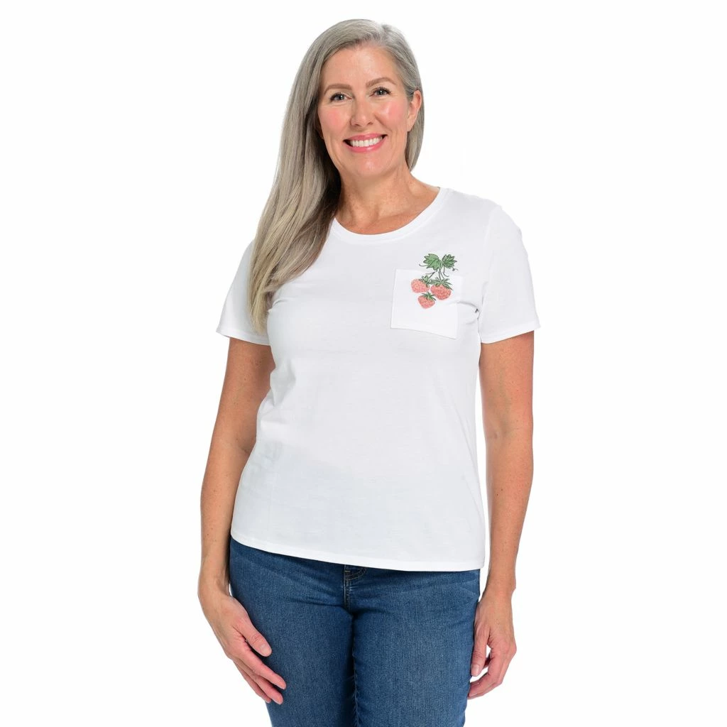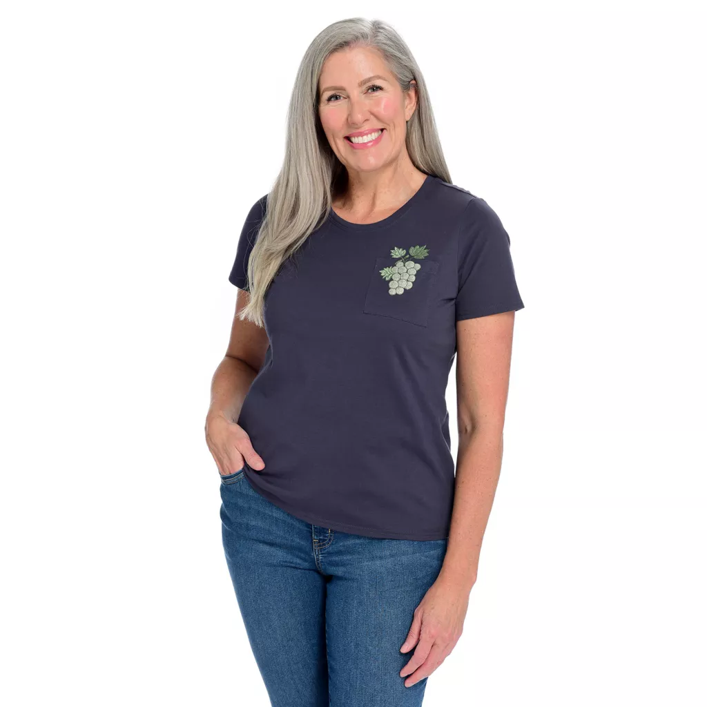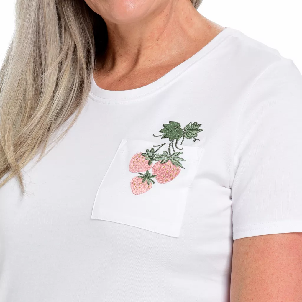Take your T-shirt collection up a notch with this sweet as can be tee. The soft and stretchy cotton fabric features embroidery on and around the chest pocket. The subtle pattern is a fun pop of whimsical style, that’s easy to pair with other items in your closet!