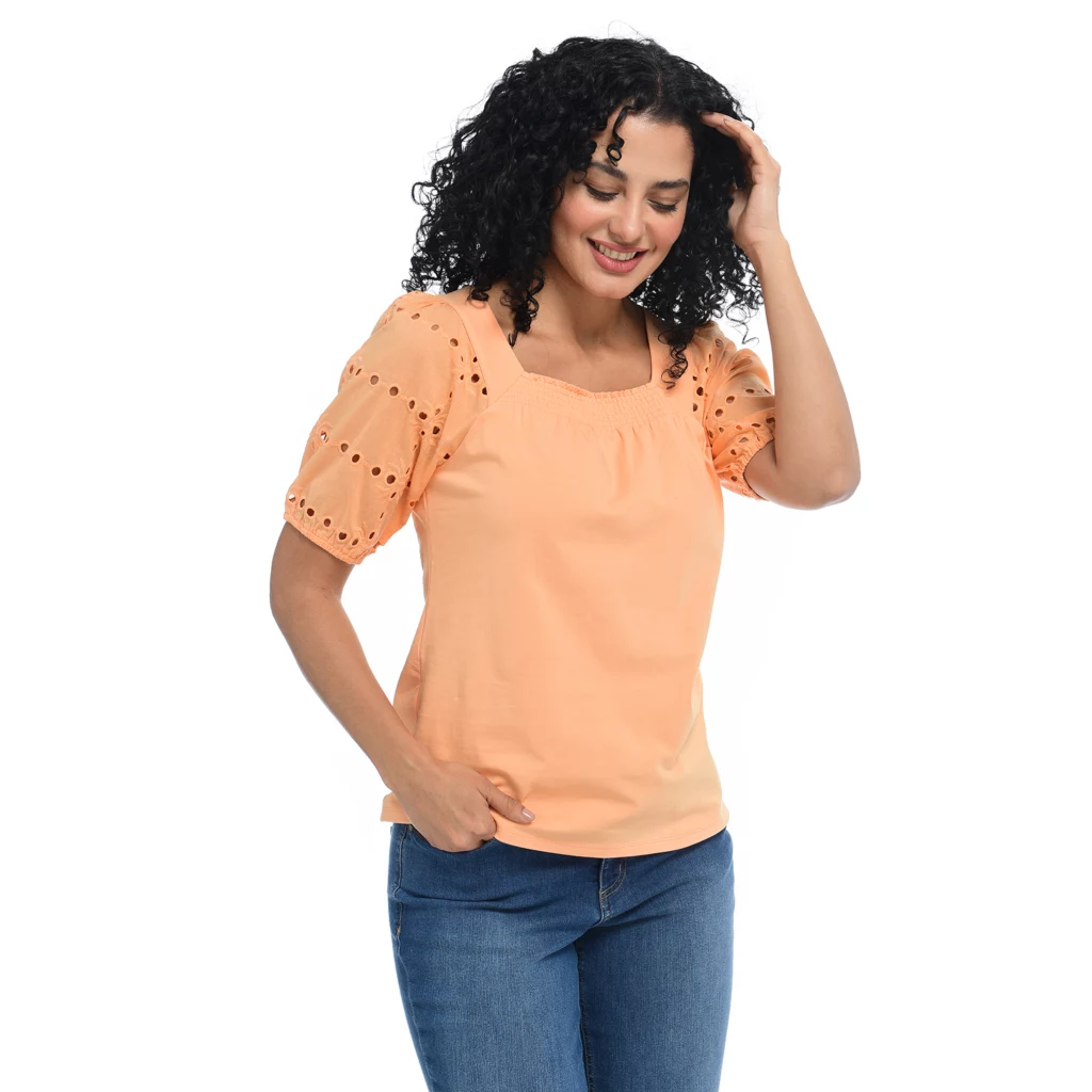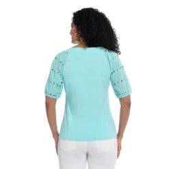 We’ve got “eye-lets” on you! For a fun and breezy spring look, this Short Sleeve Square Neck knit is for-your-eyes-only (not really, but you get the idea!). Breathable, easy to style, and the perfect top for the fast-approaching spring season.