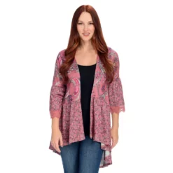 Easy to wear, this One World blouse brings a fun touch to your wardrobe with metallic threading, border prints, and crochet trim! Featuring bell sleeve and tassel details, this top brings movement and style to your typical silhouette. Pair this blouse with your favorite One World stretchy denim for an effortless and eye-catching look.