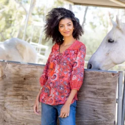 The mixed paisley textile print on this peasant style Farmers Market top makes it eye-catching and trendy! A gorgeous knit top with tassel details, you’re going to love the boho-chic energy it brings to your outfit. Finishing off with crochet trims and saturated colors, every bit of this blouse radiates beautiful design details! All that’s left to do is pick out the rest of your head-turning look.