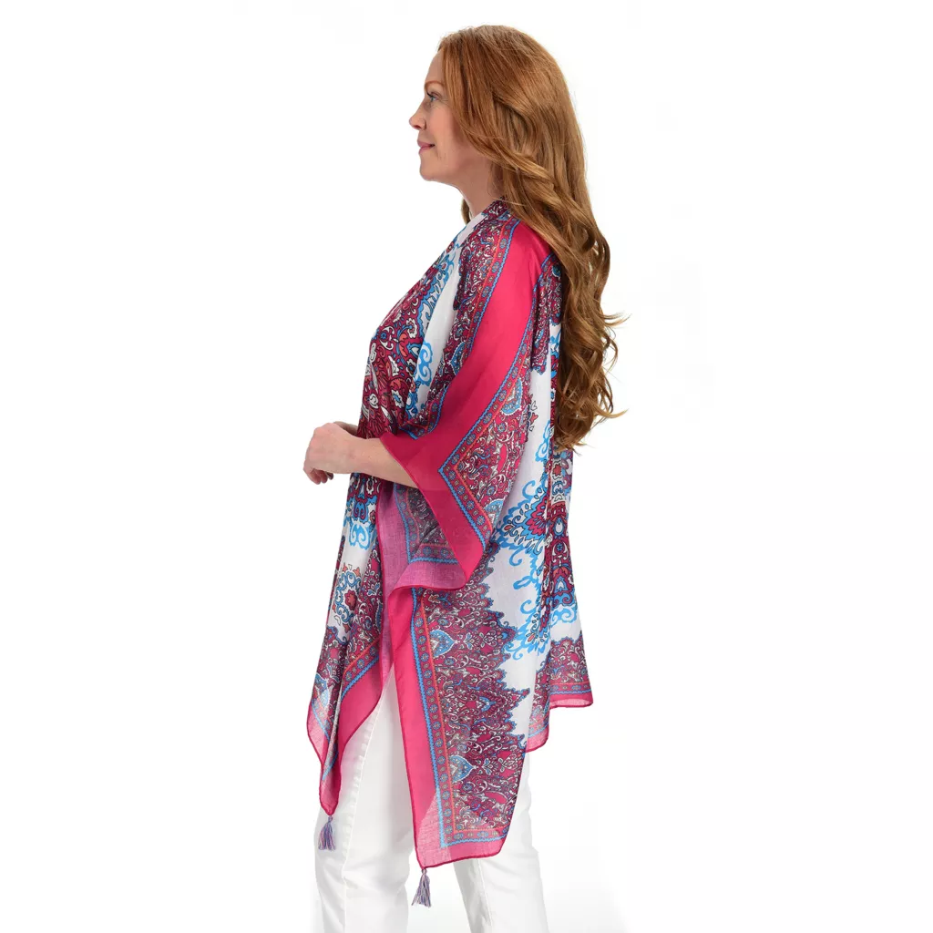 This Farmers Market kimono is the perfect topper for practically any outfit! Dress it up and add it on top of your little black dress for add that extra flair and boho style you’ve been looking for! Or spice up a tee and denim with its fun tassel detailing and distinctive hem. Offered in unique patterns and color combos, get it while you can because once its gone you will never see this pattern again!