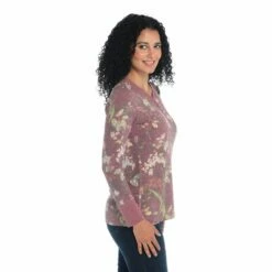 - Shirt Length: Missy (m): 27″; Woman (1x): 28″; Petite (m): 25.5″