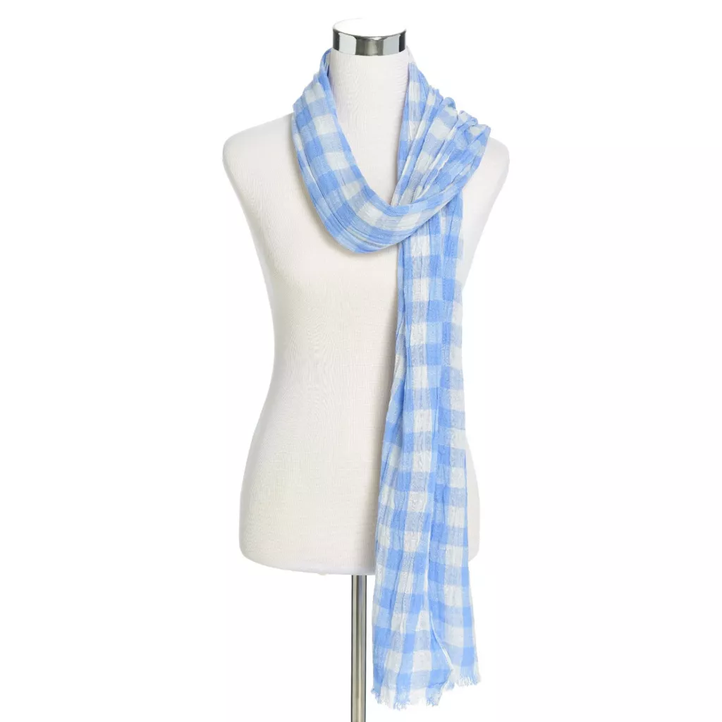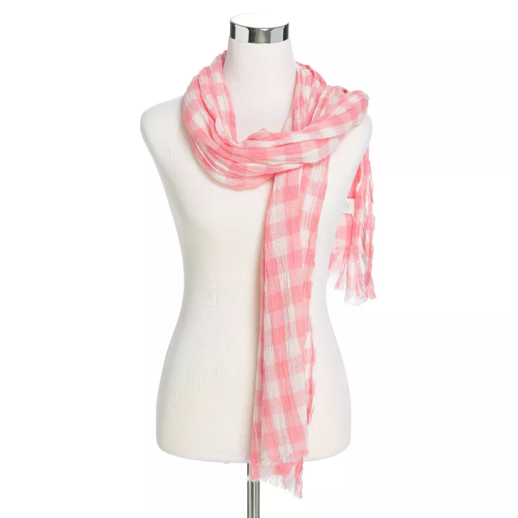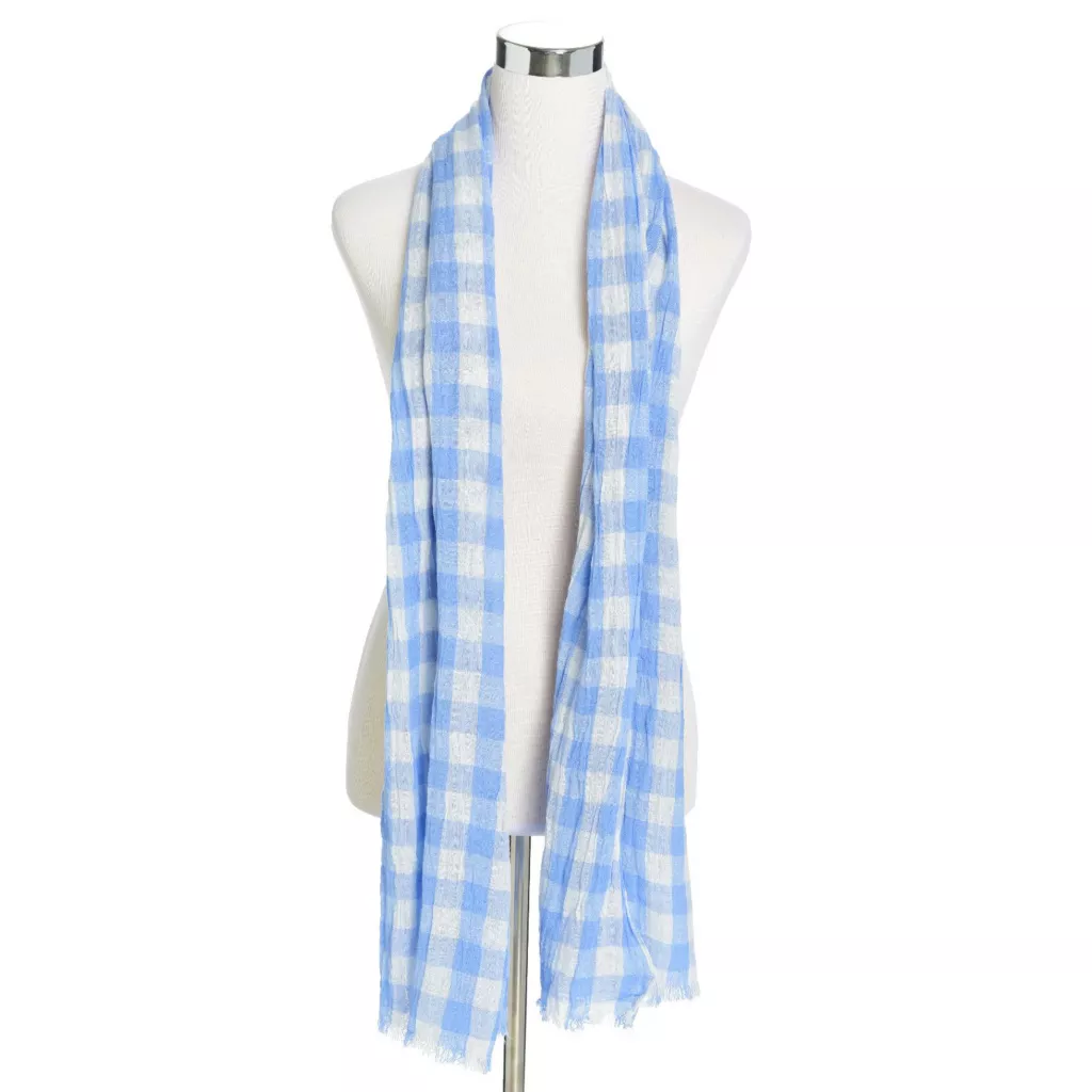 The crinkle texture of this gingham print scarf gives your look an elevated style.