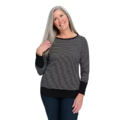 If we’re talking versatility, a thermal tee is definitely in the mix! Comfortable, on trend, and easy to style, our Mini Stripe Boatneck Thermal checks all the boxes. Wear it with denim, Pontes, or skirts. Also an easy layer beneath a vest or jacket that adds a pop of character, the ribbed cuff and hem give it a flattering, fitted look that compliments any body type! You absolutely can’t go wrong with these thermals, and if they aren’t in your collection, well. What’re you waiting for?