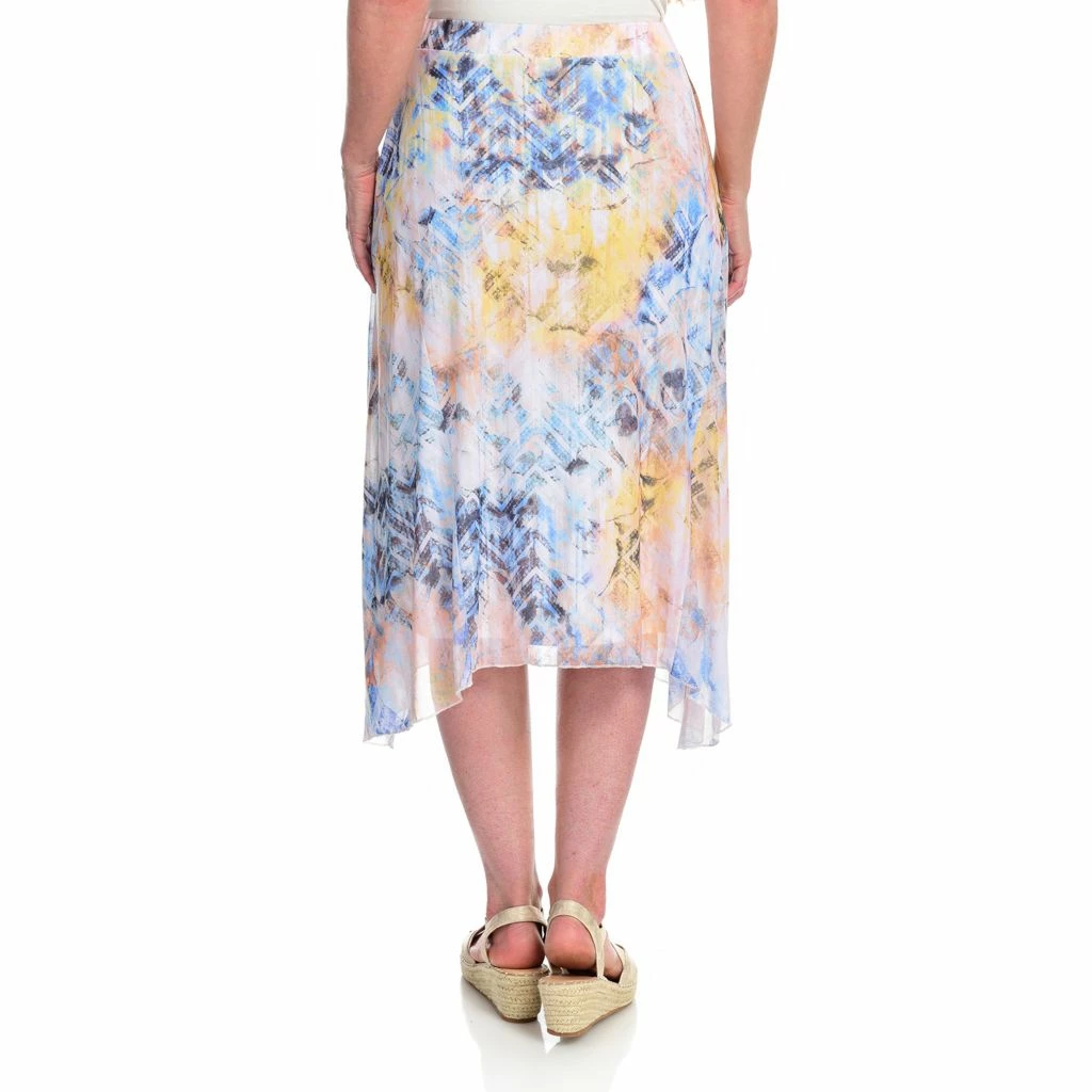 A figure flattering fit and a comfy fabric combo makes this skirt from One World a must-have add to your wardrobe! The stretchy mesh complements an elastic waistband that allows its a-line skirt to flow down to a sharkbite hem. Knit lining maintains modesty and offers coverage in this midi length skirt.