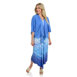 Add some fabulous float and flow to your outfit by layering it up with this breezy tie-front cardigan from One World! Most of the cardigan is made of a super soft and textured knit fabric, however, lovely lace applique decorates the back. Perfect over a casual top and jeans combo or a fun and flowy maxi dress.