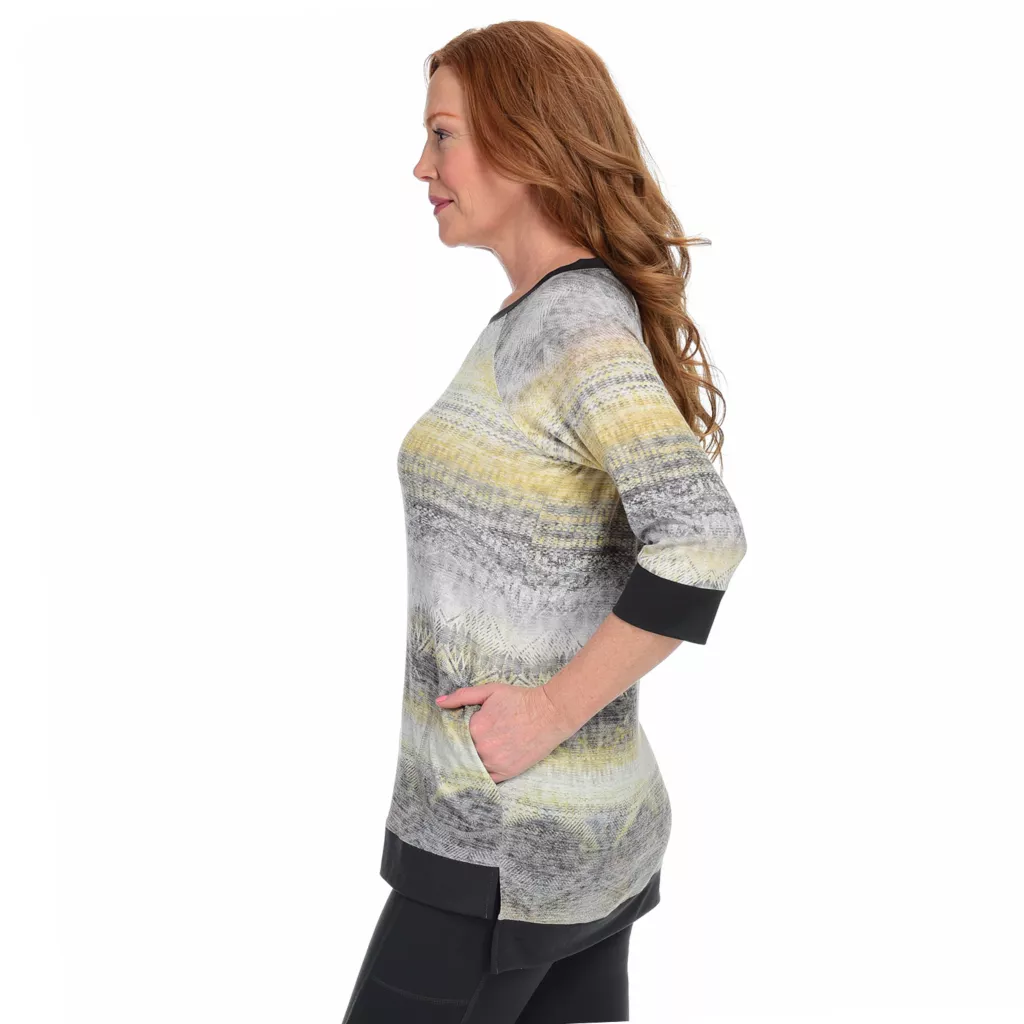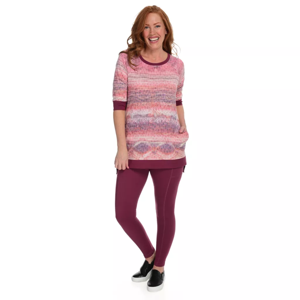Your favorite brand brings you a new favorite: athleisure clothing by One World, perfect for running errands or just wanting to be comfortable while looking put together! You are going to adore this tunic, featuring a raglan style, faded striped pattern, and pockets. This tunic pairs perfectly with athleisure leggings for a complete athleisure look! You will love how easy it is to throw on this comfortable outfit for your day to day activities. We have a feeling you’re going to want every color.