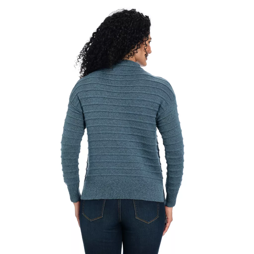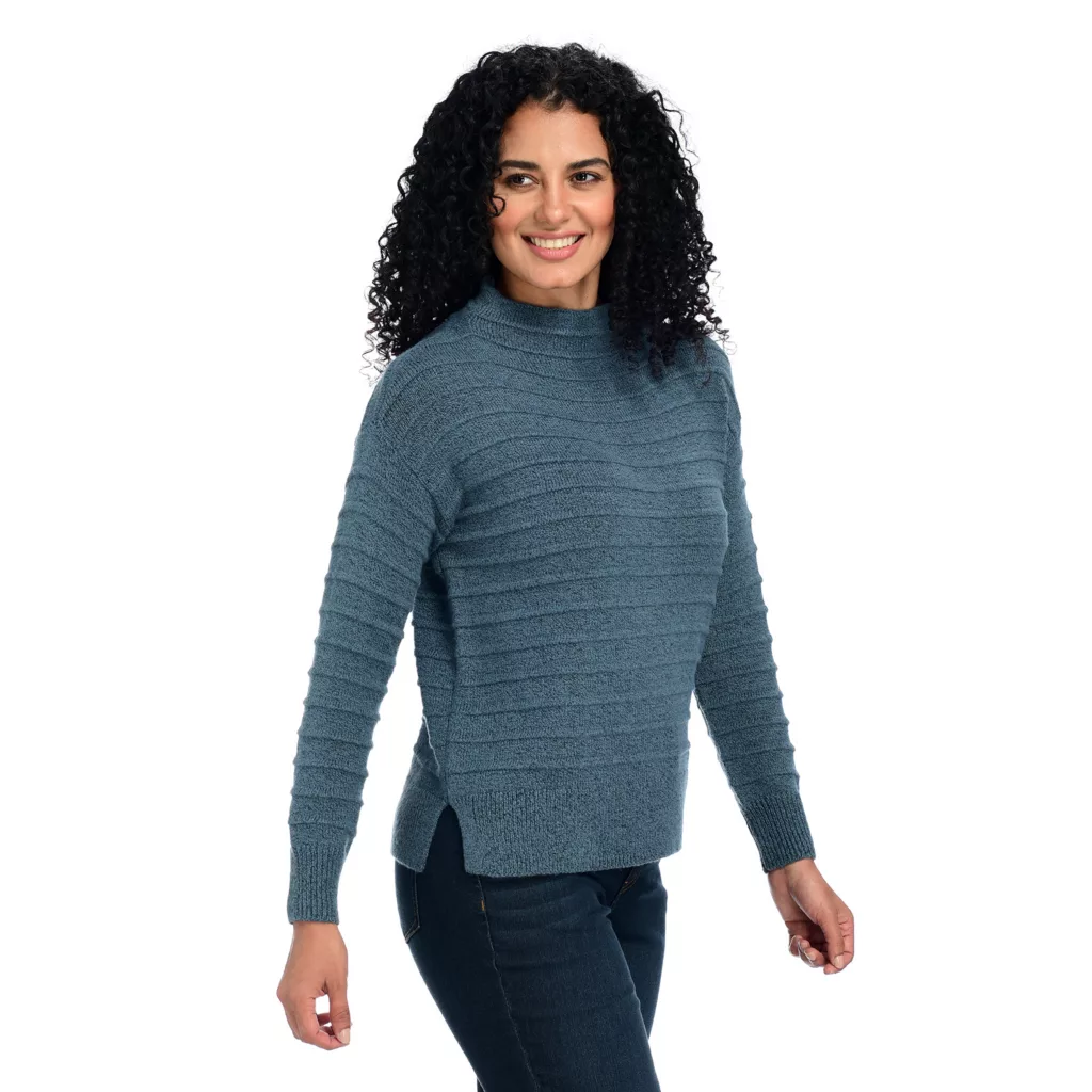 For those colder days you want to stay warm in style, this mock turtleneck gives you a cozy look without being up around the neck area. The ottoman stitch elevates your look without adding more color- great for afternoon walks in the park!