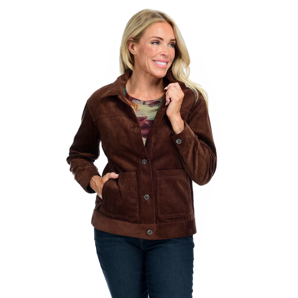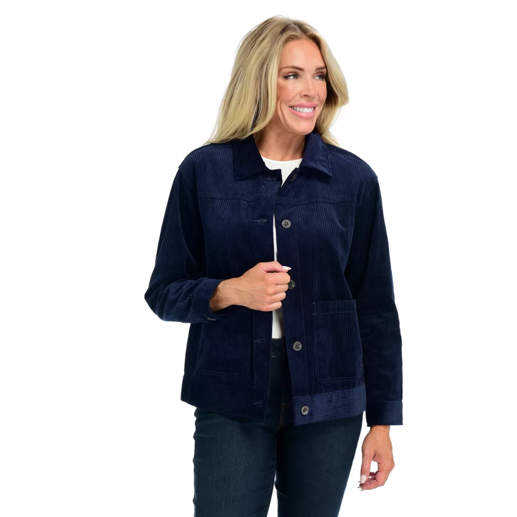 Charming corduroy is back this season! On trend for fall, this 100% cotton jacket is the perfect layering piece for over your favorite tees and long sleeves. Pair it with jeans or leggings and some flashy footwear and you are set for the season!