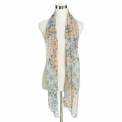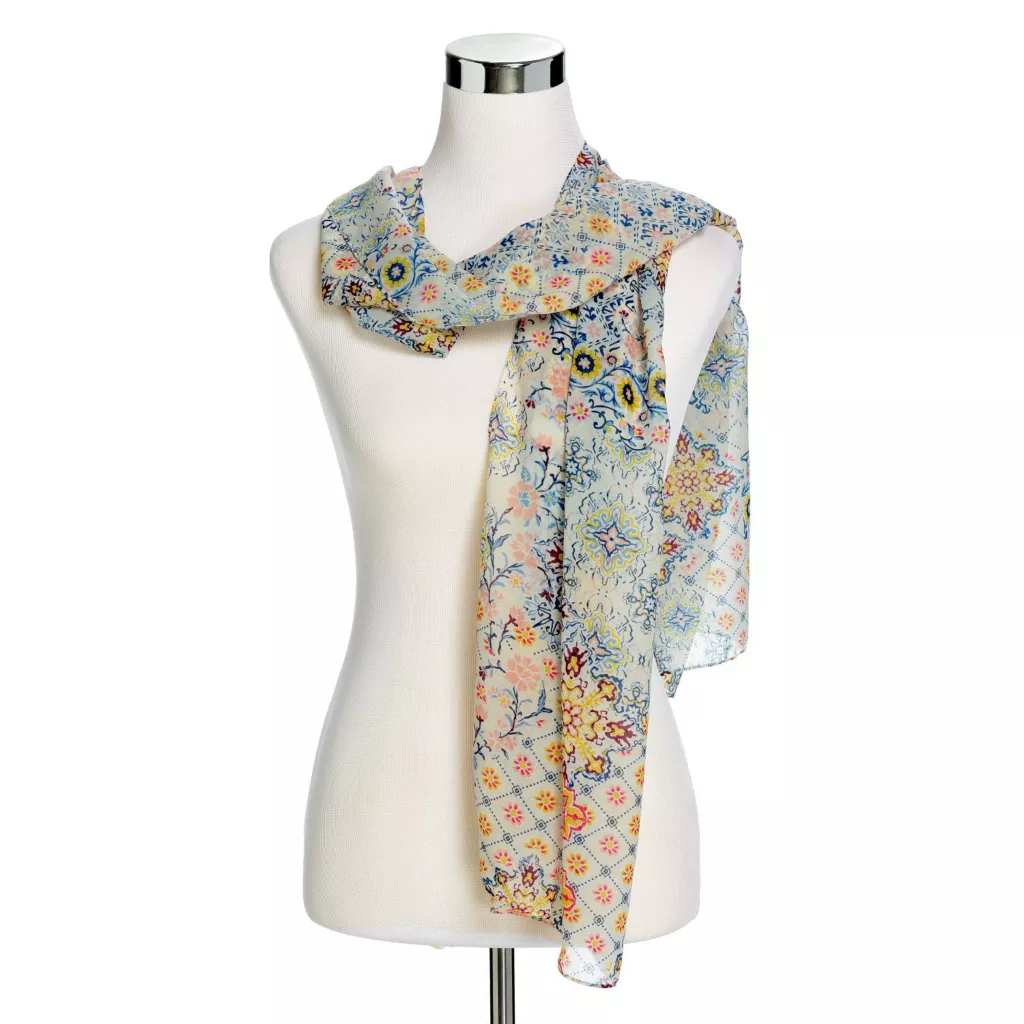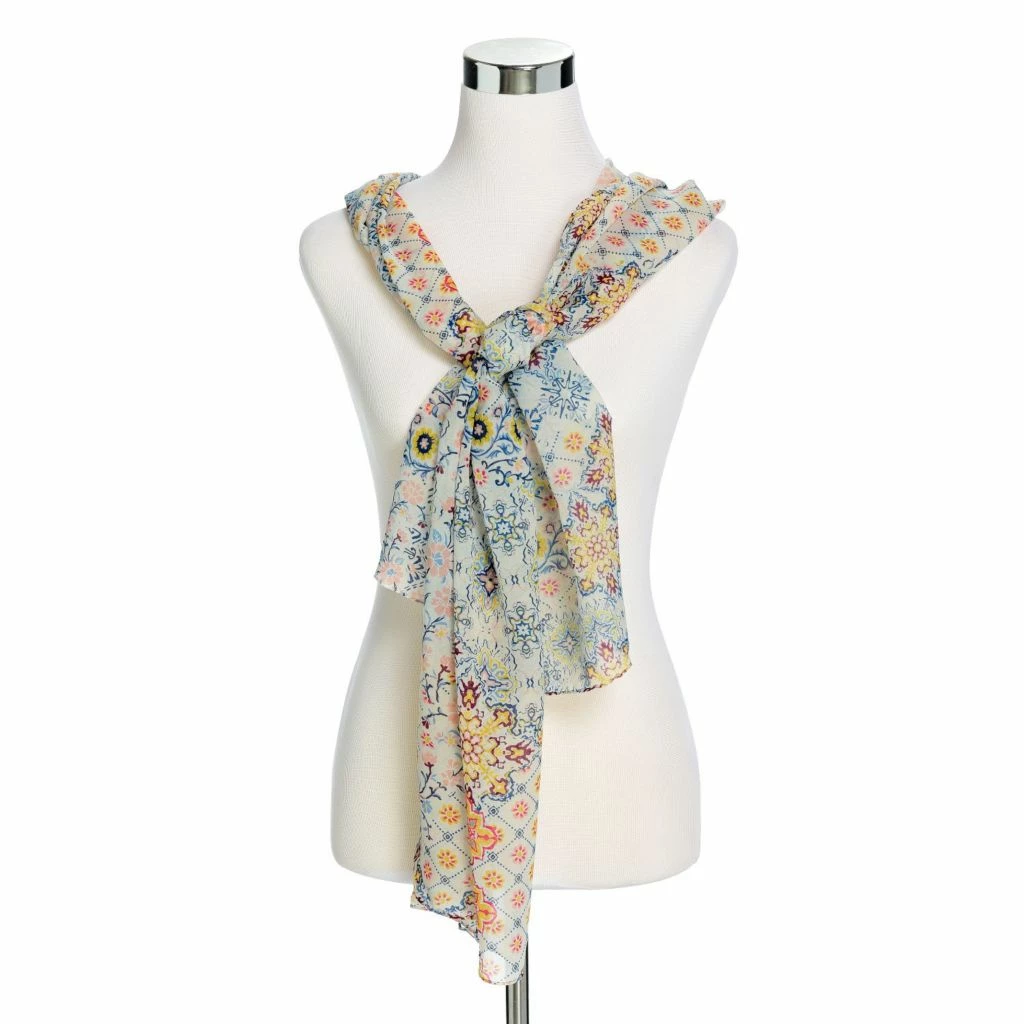 Beautiful patchwork print on a lightweight chiffon scarf.