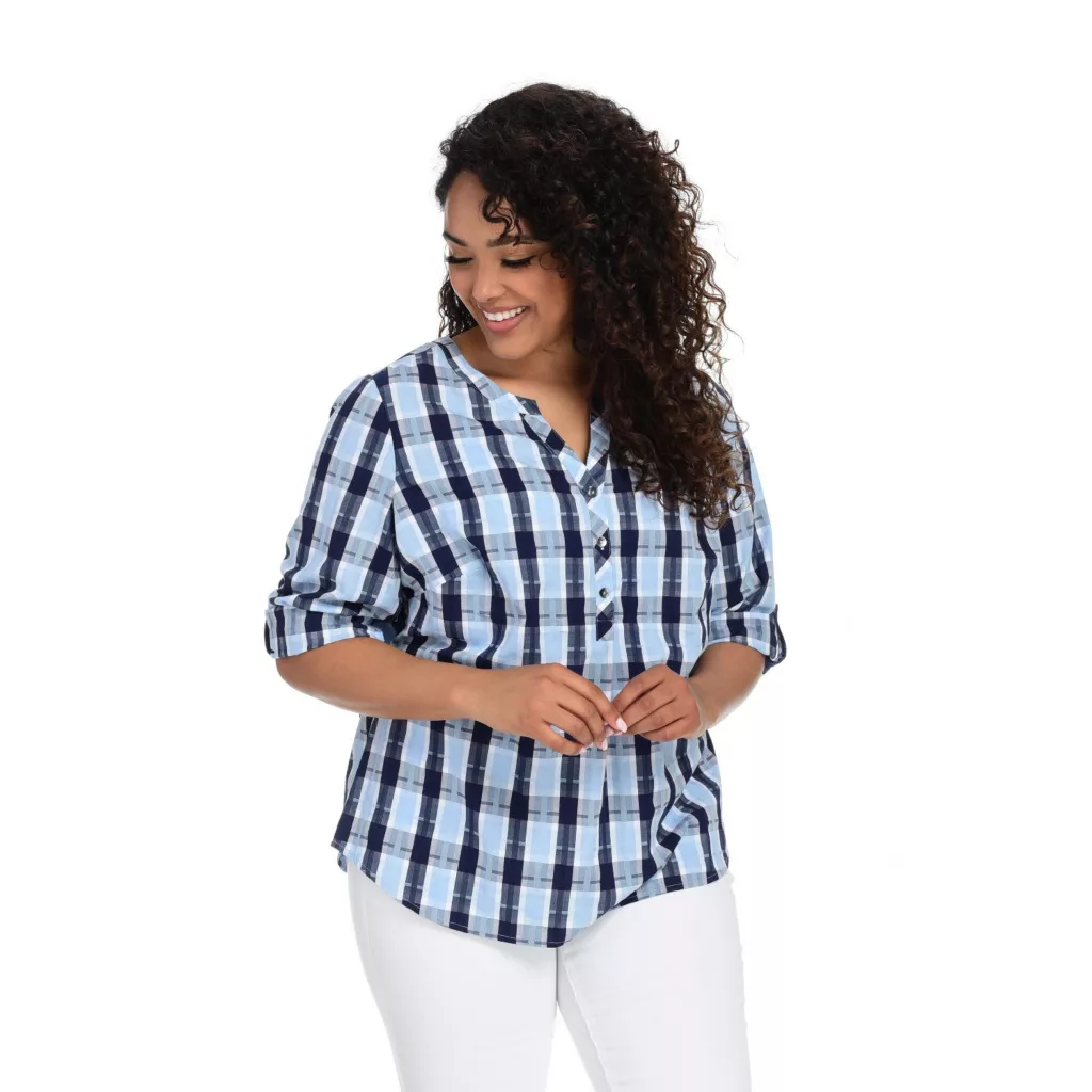 A classic plaid pattern adds everyday appeal to this crisp popover shirt.