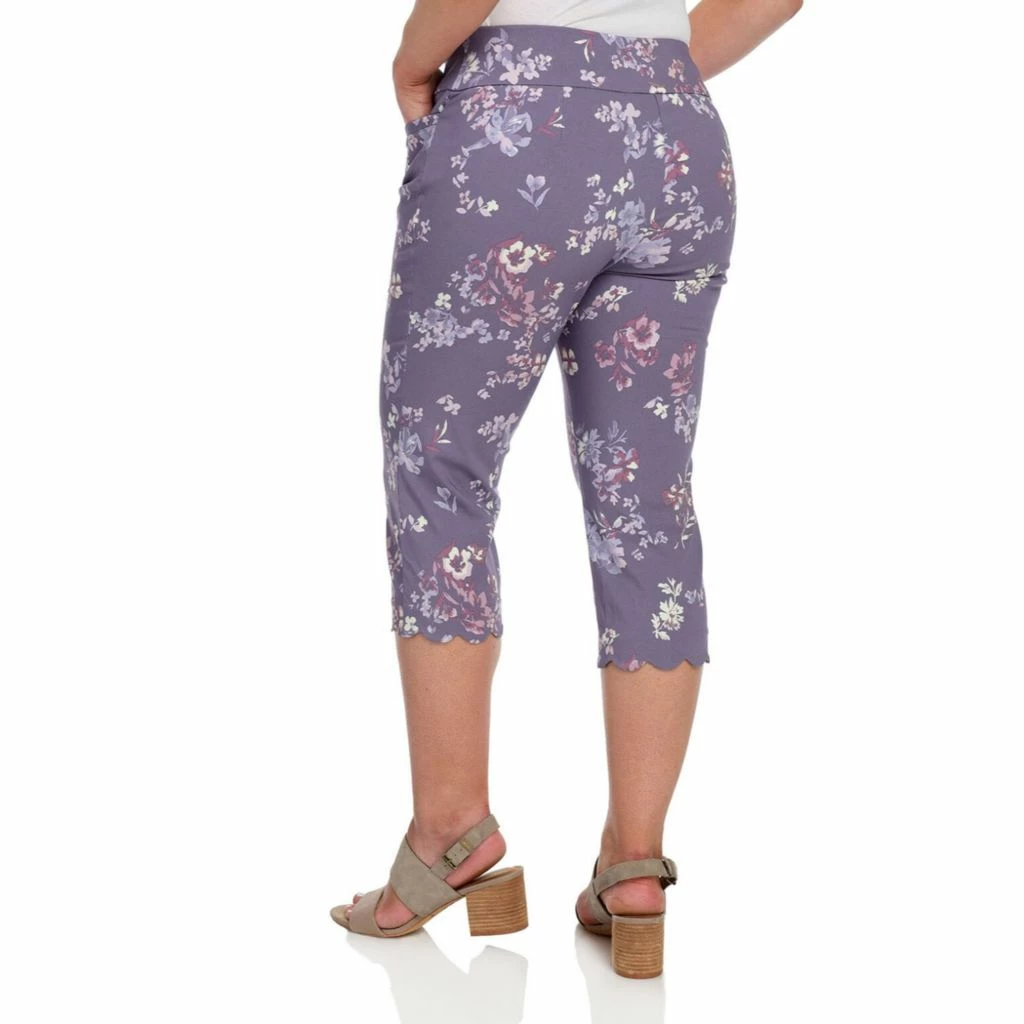 Accented with unique scalloped hems and a floral print in the prettiest shades of purple, these Signature Slimming luxe stretch crops are the perfect way to dress up any ensemble. Plus, a hidden tummy-smoothing panel helps create the most flattering silhouette.