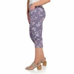 Accented with unique scalloped hems and a floral print in the prettiest shades of purple, these Signature Slimming luxe stretch crops are the perfect way to dress up any ensemble. Plus, a hidden tummy-smoothing panel helps create the most flattering silhouette.