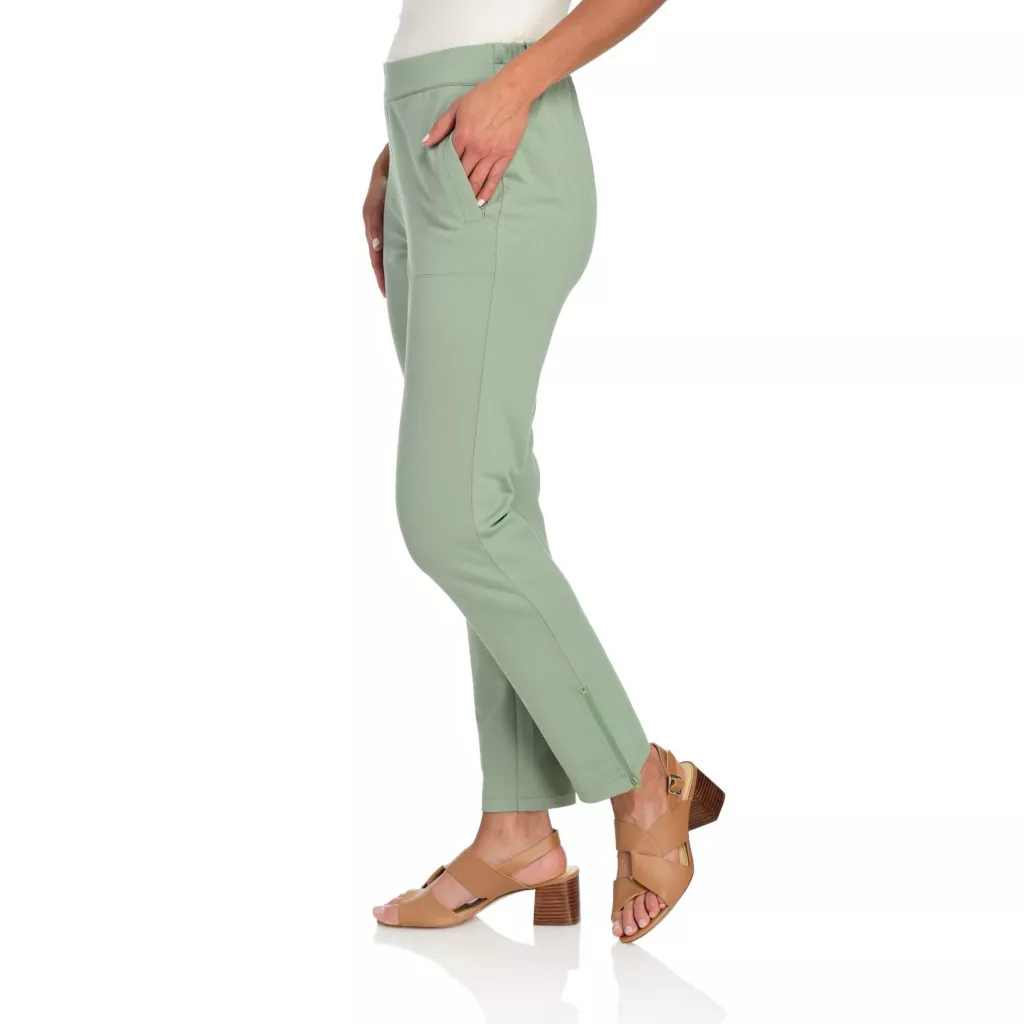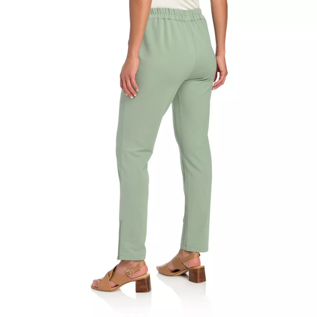 Expect the unexpected in modern knit pants with zippers at each ankle. This is a style you’ll reach for every time. Stretchy, pull-on waist provides all-day and all-night comfort.