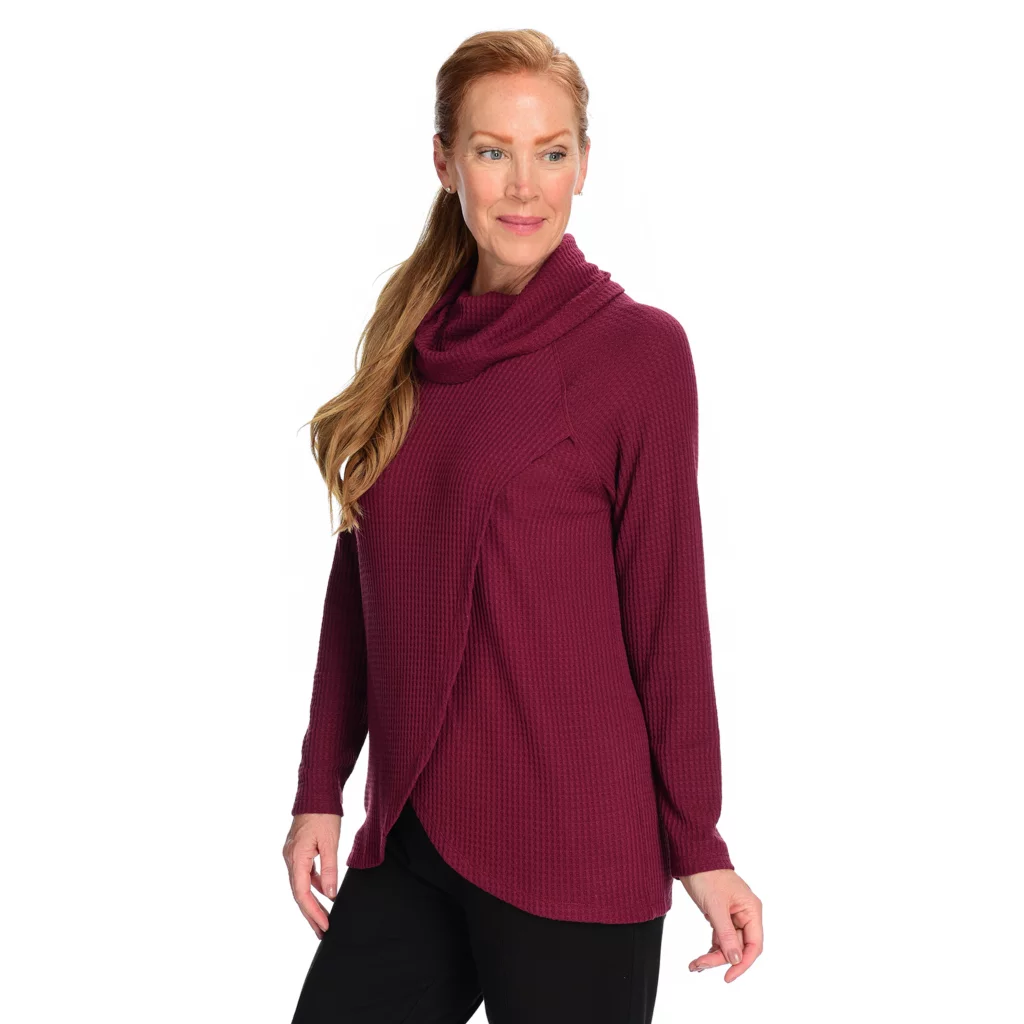 Conquer casual style in this cowl neck top. Cross-over front hem makes this lightweight flowy top extra special. Wear with leggings and jeans to feel great all day long.
