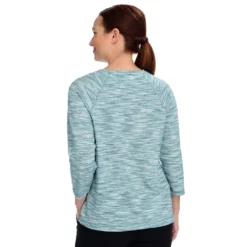 Comfortable and stretchy, this drawstring hem top is an on-the-go favorite. You choose how tight the hem is, from cinched to a relaxed fit. Space dye pattern gives this shirt a flattering blurred effect!