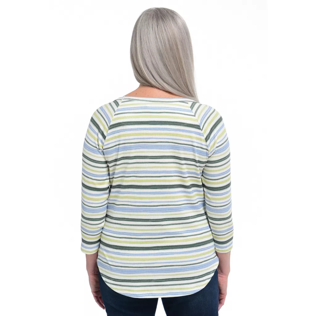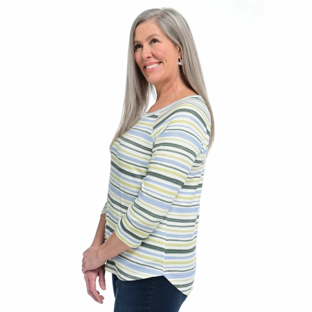Introducing our Relaxed Restyled Stripe Stitch Detail Jewel Neck Tee, a versatile garment that can be worn on its own or layered under a sweater. The classic silhouette and stripe stitch detail will never go out of style. Made from comfortable fabric, this tee is perfect for loungewear or activewear, ensuring that you look and feel great wherever your day takes you.