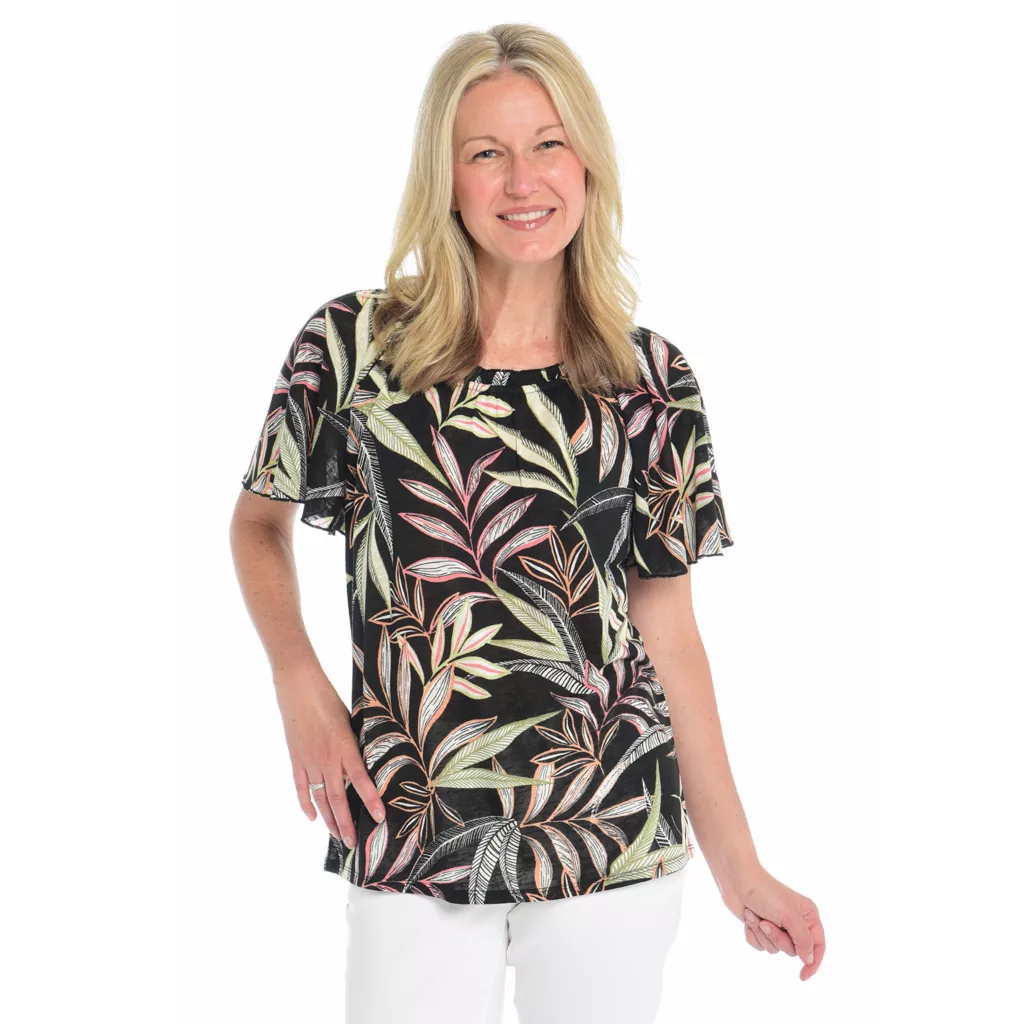 Introducing our Ruffle Neck Short Sleeve Flounce Top – a perfect blend of elegance and comfort. With its delicate ruffle neckline and flounce sleeves, this top adds a touch of femininity to any outfit. Made from soft, breathable fabric, it offers a relaxed fit that drapes beautifully. Dress it up or down, this versatile piece is a must-have for your wardrobe.
