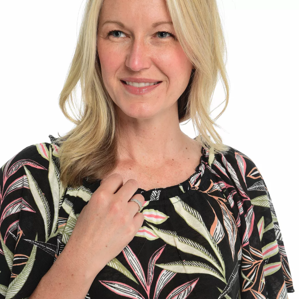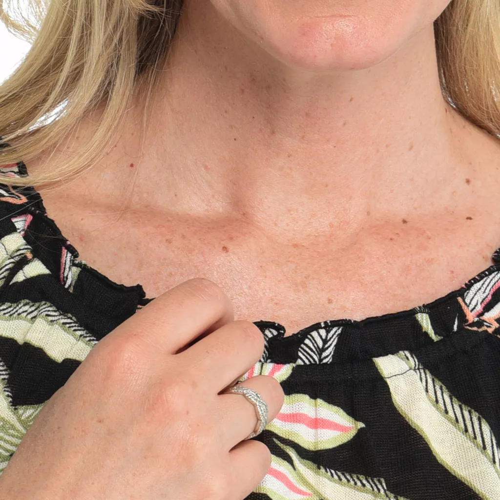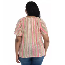 - Shirt Length: Missy(m): 26″; Woman(1x): 27″; Petite(m): 25.5″