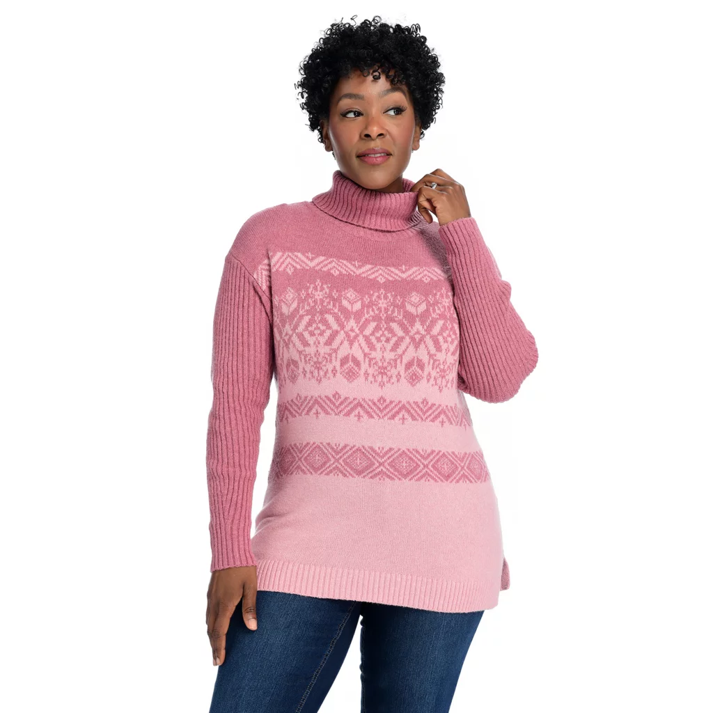 A Christopher & Banks take on snowflakes! This looser turtleneck is comfortable, cozy, and completely chilly-season chic. A cotton blend makes this breathable, light, and machine washable for easy care. Style with your favorite earrings, Ponte’s or jeans, and just about any shoe for a fit that is as unique as any snowflake.