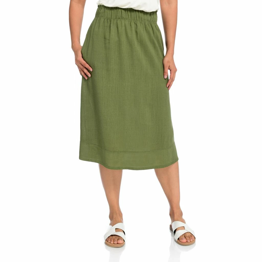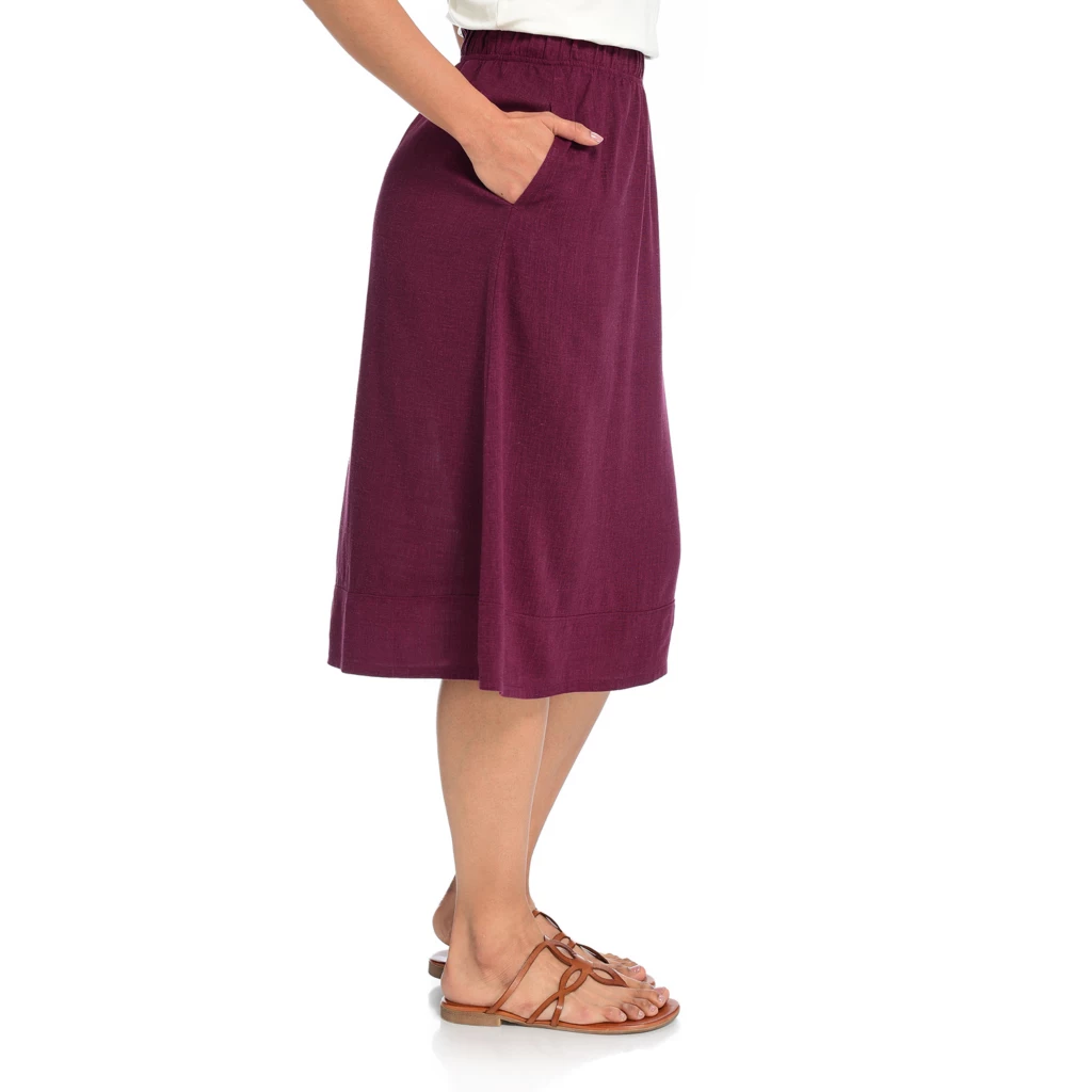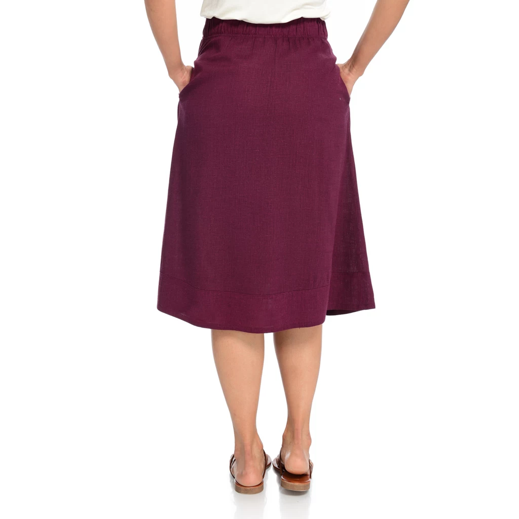 This midi-length lightweight skirt is cool enough for summer, but transitional enough for fall. The A-line classic silhouette is flattering on many body types.