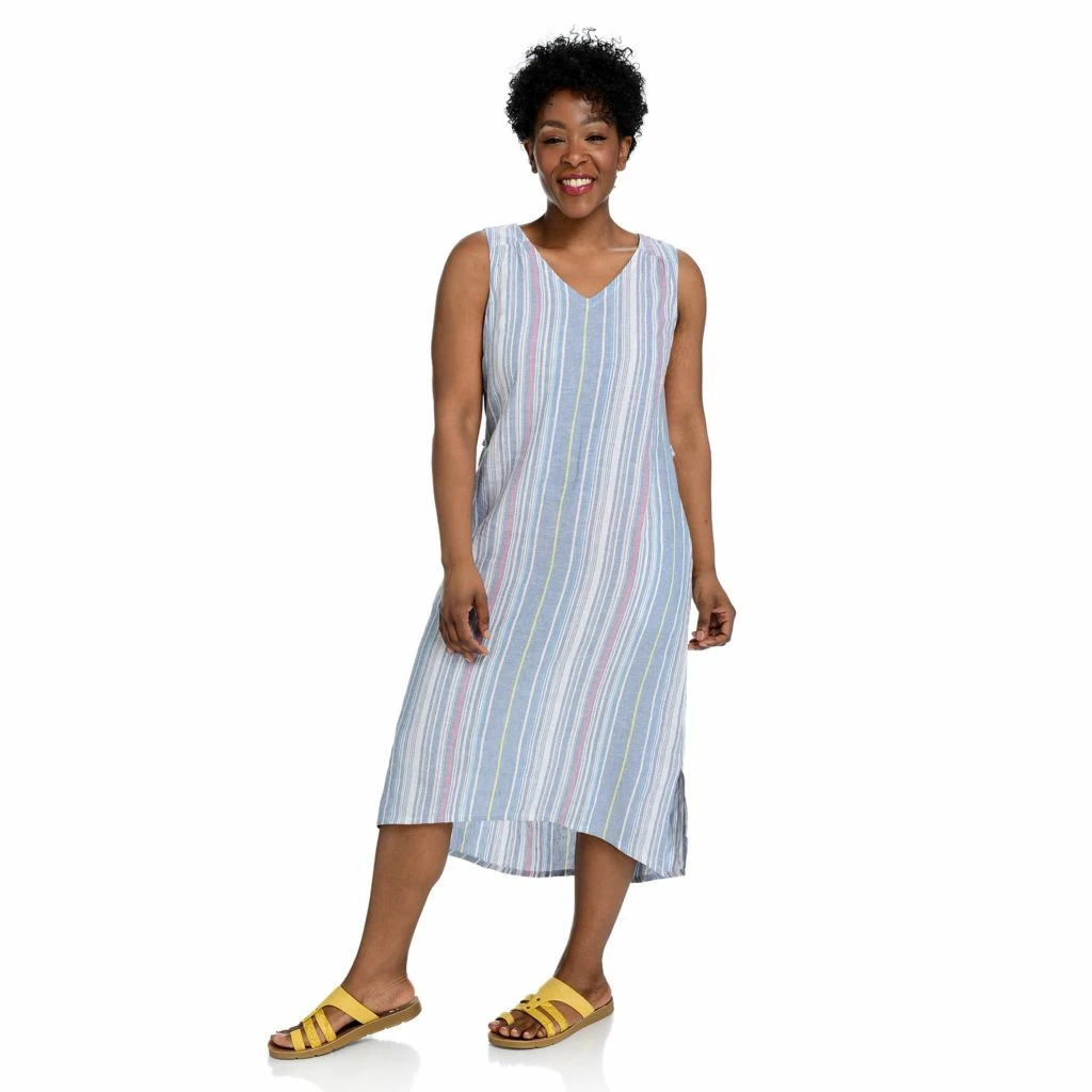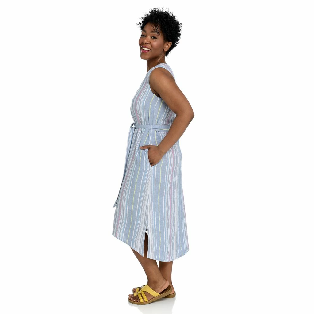 The ultimate in easy breezy style! This beautiful linen-blend dress features figure-flattering stripes in soft hues. Super lightweight with a detachable belt (and pockets!), it’s ready for all your summer festivities.