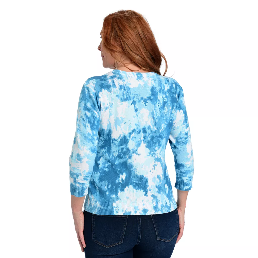 Beautiful blues blend together in this tie-dye sweater. Perfect for rainy spring days and chilled summer nights! Breathable and lightweight gauge-knit fabric keeps you warm but is thin enough to layer. Pair with your favorite denim and you’re ready for anything!
